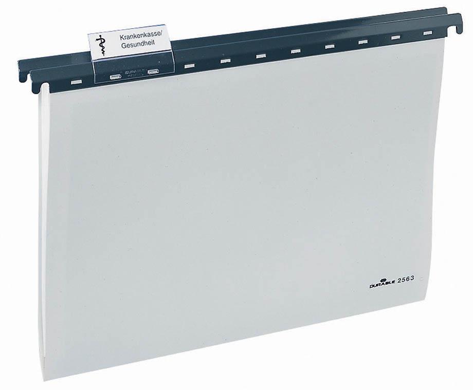 Standardna viseča mapa formata A4. Izdelana je iz močnega trpežnega polipropilena v sivi barvi. Trpežna plastična letvica omogoča obešanje v stojalo za viseče kartoteke. Priložen je plastični označevalni tabulator širine 60mm in listki za označevanje. Mapa je odporna proti trganju in omogoča shranjevanje večje količine gradiva.