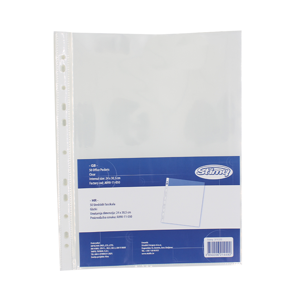 Vložna mapa U za vlaganje gradiva z zgornje strani, s stranskimi luknjami za shranjevanje dokumentov do formata A4 v registrator ali mapo. Izdelana je iz trpežne gladke 90mic debele PVC folije.