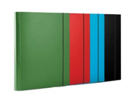 Barvna plastična preklopna mapa s tremi zavihki za vlaganje dokumentov in drugega gradiva brez luknjanja. Izdelana je iz debele trpežne polipropilenske folije v močnih živih barvah. Mapa ima več zgibov, da jo lahko prilagajamo debelini vloženega materiala. Vložimo lahko do 250 listov 80g papirja. Elastika za zapiranje preprečuje, da bi gradivo izpadlo iz mape.