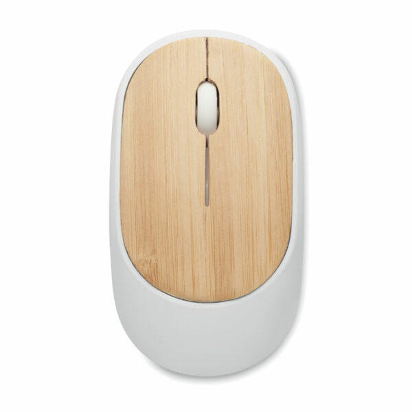 Brezžična optična miška iz recikliranega ABS z vrhom iz bambusa. 1 AA baterije niso priložene.