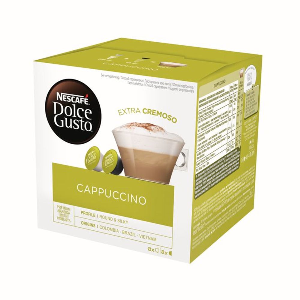 Odkrijte kavo NESCAFÉ® Dolce Gusto® Cappuccino, italijansko poslastico. Intenzivni espresso bogate arome in mleko kremaste teksture ustvarjata to čudovito poslastico.