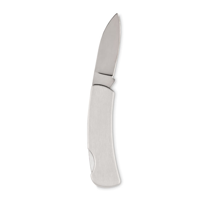 Zložljiv žepni nož z enim rezilom iz nerjavečega jekla.