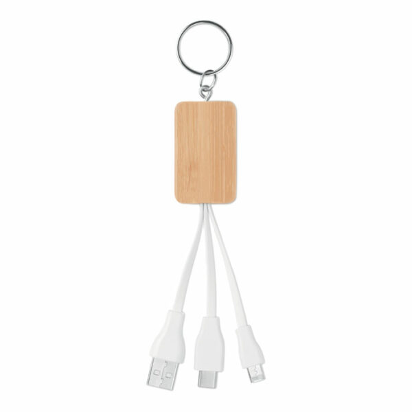 Obesek za ključe iz bambusa s ovitkom s polnilnim kablom z USB-A do Micro-B (pin 2 v 1) in vrsto C.