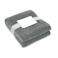 Odeja iz flisa z mehko podlogo. Zavita s trakom in kartico za tisk.