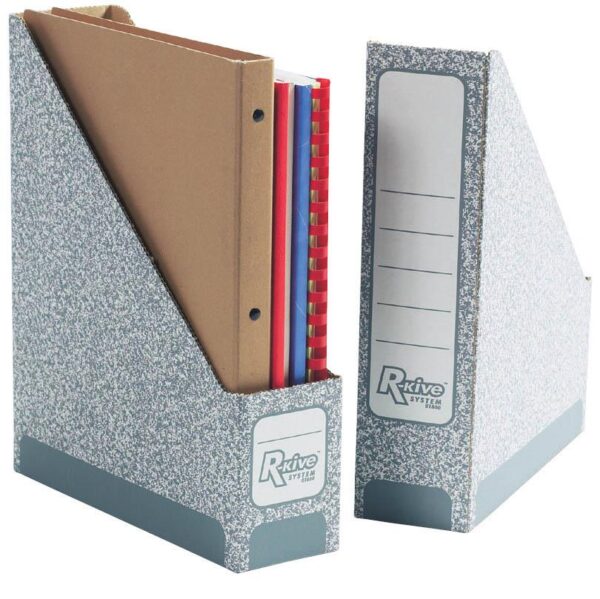 Praktično namizno stojalo za pregledno odlaganje revij, katalogov ali dokumentov povečanega formata A4. Izdelano iz triplastnega valovitega 390g kartona.