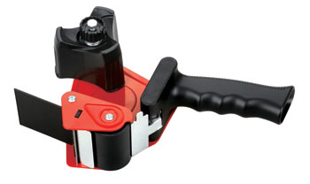 Odvijalec za ročno lepljenje kartonske embalaže z mehanizmom za kontrolo napetosti traku in zavoro. Enostavna in varna menjava traku, ostro rezilo za rezanje lepilnega traku. Uporaben za lepilni trak dimenzij 48 x 66.