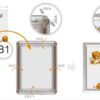 Reklamni stenski okvirji za plakate so najbolj razširjen in najbolj zaželen pripomoček za oglaševanje v številnih podjetjih. Okvir je narejen iz aluminija, kar zagotavlja dolgo obstojnost okvirja. Zaradi klip sistema je namestitev in menjava plakatov zelo enostavna, okvir pa se lahko namesti pokončno ali ležeče. Stranice okvirja za plakate enostavno odprete s prednje strani, odstranite zaščitno antirefleksno PVC folijo in zamenjate plakat. Uporaben za postavitev v notranjih in zunanjih prostorih . Idelalen za uporabo v hotelih, konferenčnih centrih in dvoranah.
