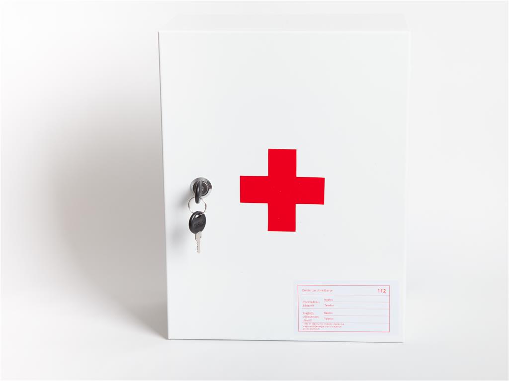 Omarica vsebuje osnovne pripomočke za nudenje prve pomoči poškodovancem na delovnem mestu.