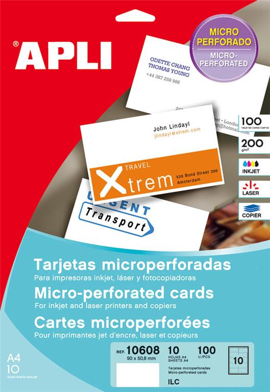 Vizitke z perforacijami APLI so vizitke primerne za več vrst tiskalnikov kot tudi za fotokopiranje. Mikroperforacija vam omogoča, da si lahko enostavno natisnete vizitke doma ali v službi.