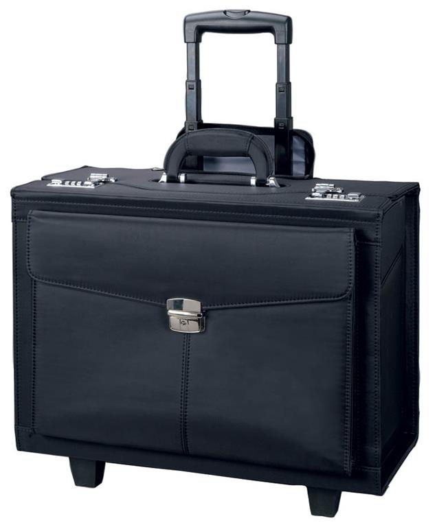 Eleganten pilotski kovček iz mikrotkanine za prenašanje dokumentov in prenosnega računalnika. Ima dve številčni ključavnici ter dodaten zunanji predal s posebno ključavnico. V notranjosti so trije razdelki: raztegljivi del, prostor za prenosni računalnik in odstranljivi ovitek. Vsebuje še tri prostore za kreditne kartice, dodaten žep z zadrgo, tri zanke za pisala, dva stranska žepa in dodaten predal z zadrgo. Kovček je opremljen s kolesci in teleskopskim ročajem.