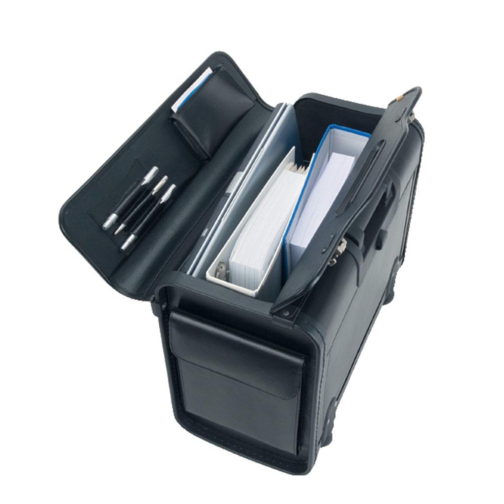 Eleganten pilotski kovček iz mikrotkanine za prenašanje dokumentov in prenosnega računalnika. Ima dve številčni ključavnici ter dodaten zunanji predal s posebno ključavnico. V notranjosti so trije razdelki: raztegljivi del, prostor za prenosni računalnik in odstranljivi ovitek. Vsebuje še tri prostore za kreditne kartice, dodaten žep z zadrgo, tri zanke za pisala, dva stranska žepa in dodaten predal z zadrgo. Kovček je opremljen s kolesci in teleskopskim ročajem.