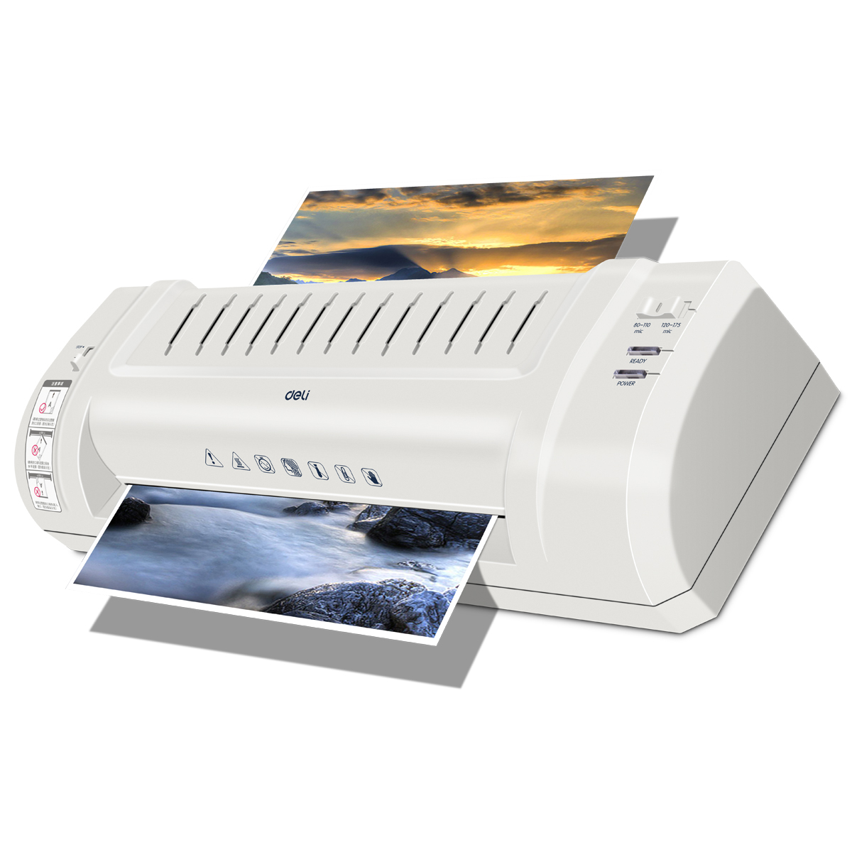 Aparat za plastificiranje Deli vam omogoča plastificiranje do formata A3 z žepki debeline največ 2×175 mic. Zaznavanje debeline žepkov je avtomastko. Čas ogrevanja znaša 5min, deluje s sistemom šestih valjev, odstranitev zagozdenega dokumenta pa je enostavna.