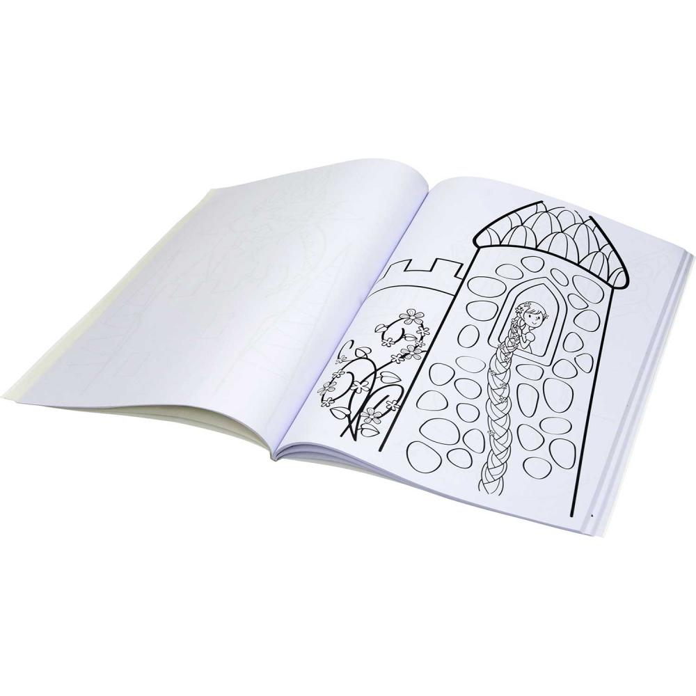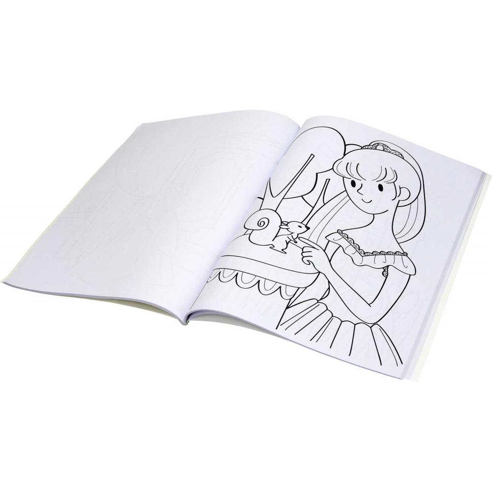 Pobarvanka z motivi princes je namenjena mlajšim otrokom za učenje in spodbujanje spretnosti.
