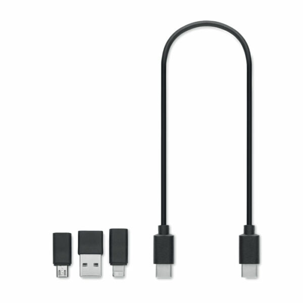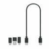 Polnilni kabel 3 v 1 z izbranimi priključki. Pakirano v elegantni škatli iz akacijevega lesa. Kabel Type-C na Type C, C na USB-A, C na micro-B, C priključke.