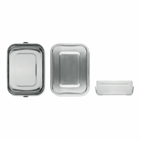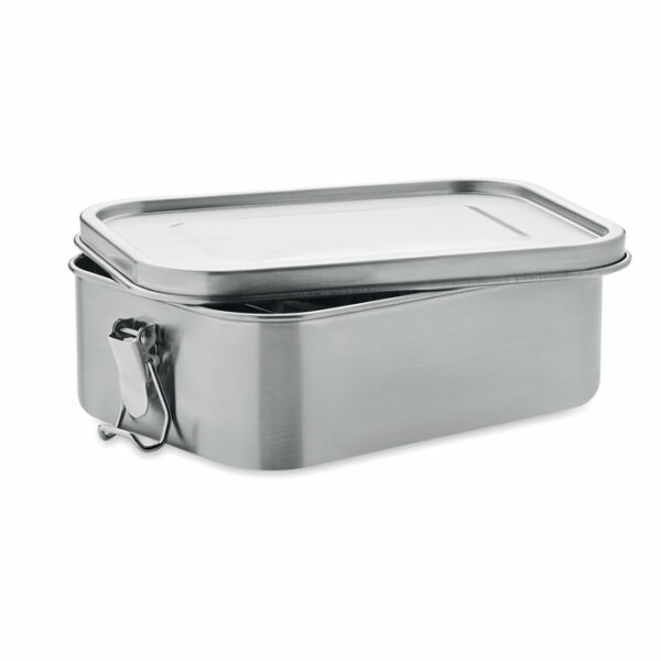Posoda za malico iz nerjavečega jekla z močnimi in varnimi stranskimi zaponkami, vključno z notranjim delilnikom.