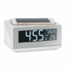 Vremenska postaja za brezžično polnjenje / budilka s senzorjem na dotik z nočno lučko. AC-DC 2-polni vtični adapter je vključen. Izhod: DC5V/1.0A. Združljivi najnovejši androidi, iPhone® 8 in novejši.