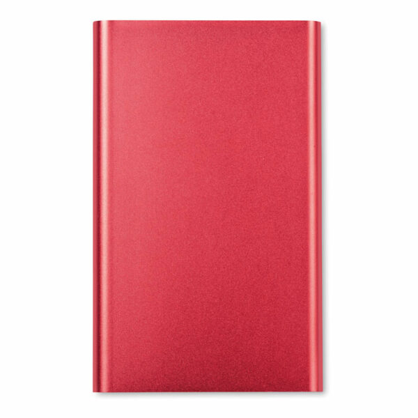 Power bank 4000 mAh iz aluminija. Zmogljivost za uporabo pametnega telefona, izhodni tok DC5V/1A. Vključuje indikatorsko lučko in kabel USB z mikro usb vtičem.