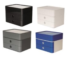 V elegantno urejeni pisarni vam zagotovo ne sme manjkati Leitz WOW predalnik. Premium predalnik je elegantno modernega videza, dvobarvna kombinacija z visokim sijajem. Pet gladko tekočih izvlečnih predalov z omejevalom proti izpadanju zagotavljajo hitro in učinkovito vlaganje in odlaganje dokumentov. Večji predal omogoča tudi hrambo pisalnega pribora. S predali, ki imajo povsem zaprto prednjo stranico preprečite vdore v zasebnost in poslovne skrivnosti. Nedrseče gumijaste noge omogočajo nalaganje do treh predalnikov in s tem velik prihranek prostora.