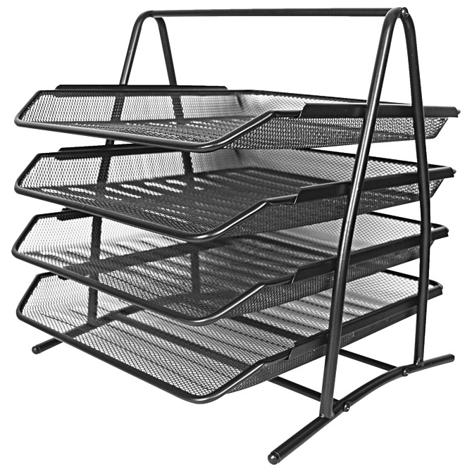 Set štirih namiznih predalov iz trpežne lakirane kovinske žice, namenjen preglednemu odlaganju dokumentov in pošte. Posamezne predale lahko izvlečemo. Proti izpadanju dokumentov je sprednji del kasete rahlo dvignjen.