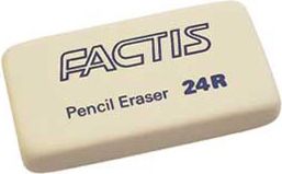Radirka Factis 24R, zagotavlja mehko in učinkovito radiranje, saj je sestavljena iz materialov, ki ne vsebujejo plastike. Primerna je za brisanje grafitnih svinčnikov.