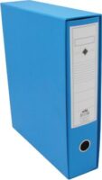 Registrator v stabilni škatli formata A4 z dvižnim mehanizmom višine 50mm. Registrator ima na hrbtišču natisnjen prostor za vpis vsebine ter hrbtno luknjo za lažje izvlačenje. Platnica je izdelana iz sive reciklirane lepenke debeline 1,5mm, kaširane v barvni papir 100g. Škatla je izdelana iz sive reciklirane lepenke debeline 1,0mm, kaširane v barvni papir 120g.