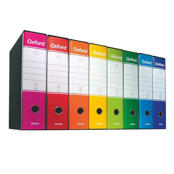 Registrator v škatli format A4 in širina 50 mm s kovinskimi stranskimi ojačitvami je sinonim za izbrano kvaliteto družbe Esselte in v številnih državah zavzemajo posebno mesto med najbolje prodajanimi registratorji. Trpežna 2-milimetrska lepenka kaširana v čudovit barvni papir naredi Oxfordov registrator nezgrešljiv na polici. Notranja in zunanja stran registratorja sta v enaki barvi. Škatla registratorja je v črni barvi. Ima visoko vsebnost recikliranega materiala.