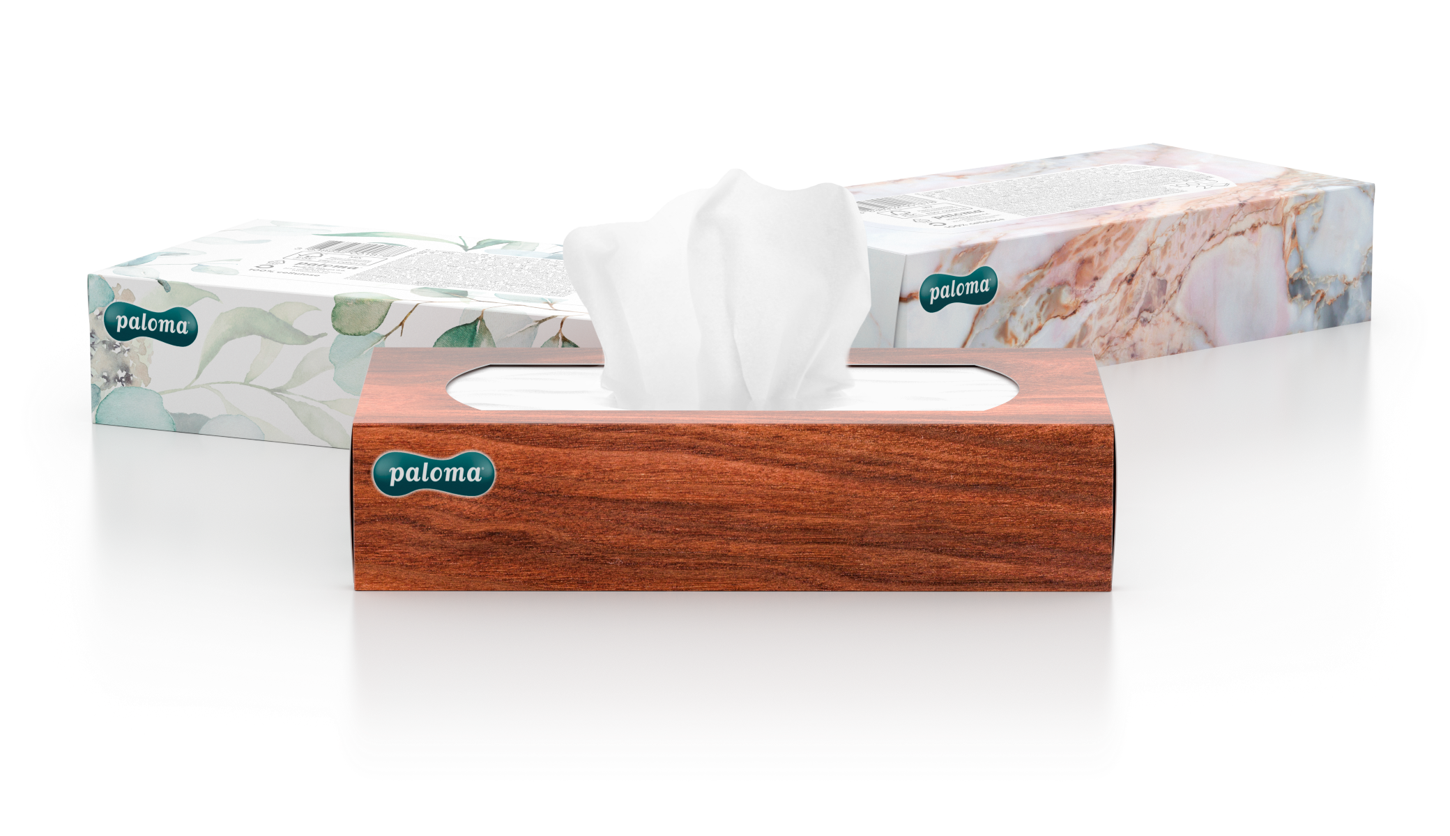 V lični škatlici iz 100% papirja se skriva 100 nežnih dvoslojnih robčkov, ki jih lahko postavite v pisarno ali kuhinjo in jih imate tako vedno pri roki.