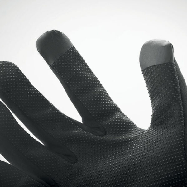 Tekstilne športne rokavice za pametni telefon. Na dlani in prstih so proti zdrsne ojačitve iz PVC-ja, dva prsta pa imata funkcijo za zaslon na dotik.