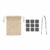Set kamnov za večkratno uporabo v elegantni darilni škatli iz bambusa. Vključuje devet kamnitih ledenih kock za večkratno uporabo, pakirano v bombažno za shranjevanje in kleščami.