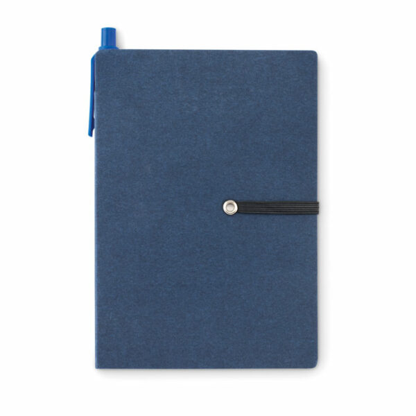 Zvezek iz recikliranega kartona z blokom in samolepilnimi lističi vsebuje, 140 črtastih strani (70 listov), veliki in srednji blok, štirje označevalci različnih barv in kemični svinčnik.