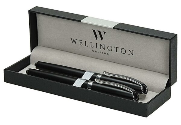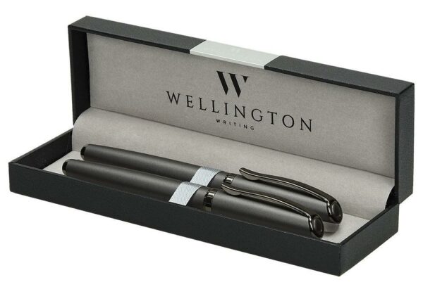 Pisalni set blagovne znamke WELLINGTON zagotavlja visoko kvaliteto in moderen dizajn, v setu kemični svinčnik in nalivno pero.