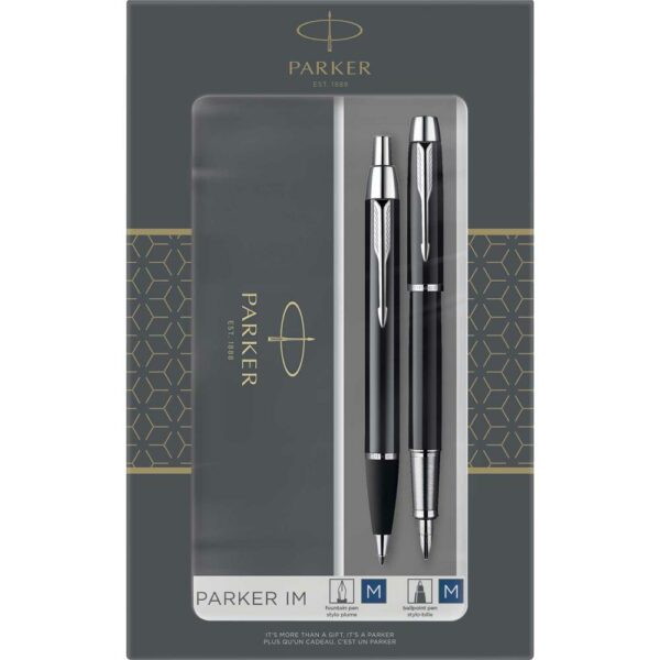 Pisalni set blagovne znamke PARKER Duo zagotavlja visoko kvaliteto in moderen dizajn, v setu kemični svinčnik in nalivno pero Parker IM.