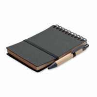 Set poslovni vsebuje, beležko A6 s plutovinastim ovitkom s 70 črtastih listov recikliranega papirja, ujemajoč kemični svinčnik s sponko, pritiskom na gumb, z detajli iz recikliranega kartona in koruze.