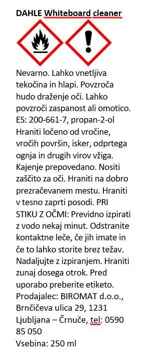 Set vsebuje: 1x čistilni alkohol 250ml, 1x magnetno držalo za krpico, 12x čistilna krpica, 4x flomaster WhiteBoard marker, 20x magnet, premer 32 mm