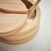 Set za sol in poper iz bambusa z vgrajeno žlico za serviranje, dva predelka in pokrovom z vrtljivim odpiranjem.