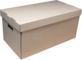 Arhivske škatle za arhiviranje dokumentov in publikacij formata A4 brez luknjanja, širine 80 mm, izdelane iz 390g troslojne valovite lepenke. Zaradi oblike in izjemne stabilnosti jih je možno zlagati tudi po višini. Za zlaganje škatel ne potrebujemo lepilnega traku.