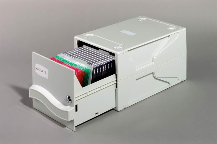 Škatla za shranjevanje do 26 CD/DVD diskov v trdih škatlicah s petimi PVC pregradnimi ploščicami.