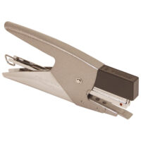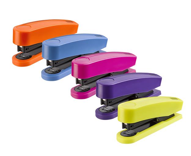 Praktičen eleganten spenjač s kovinskim ogrodjem in plastično prevleko za prijeten otip. Spenjač ima natančno enojno vodilo in kovinski zalogovnik za sponke, ki jih dodajamo z zgornje strani.