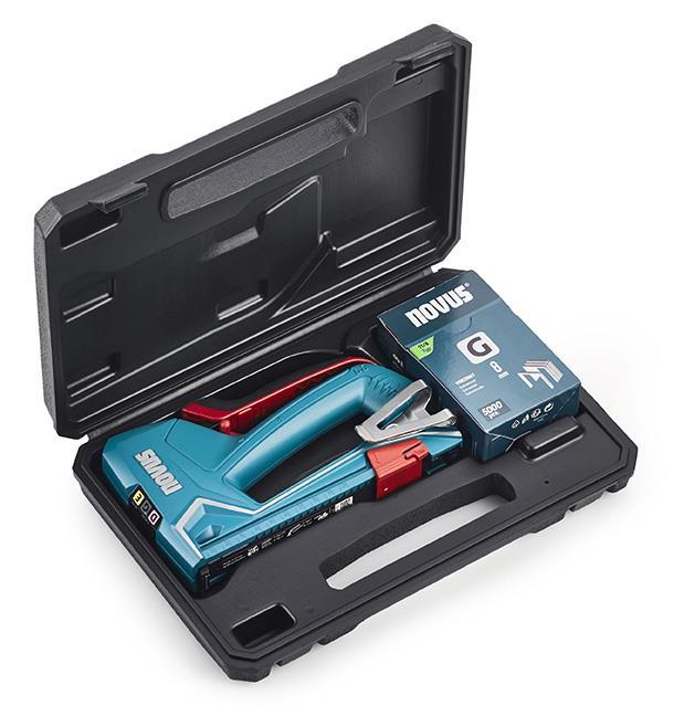 Močan profesionalni spenjač iz visokokakovostne ABS plastike spenjač z vzdržljivim ohišjem iz tlačno litega cinka za popolno pritrjevanje najrazličnejših plošč in okrasnih letev na gradbiščih in v delavnicah z ergonomsko ročica za lažje delo in možnim zaklopom ročice. Sistem za hitro vstavljanje sponk na spodnjem delu z varnostnim zaklopom in dober pregled nad zalogo sponk. Distančnik omogoča spenjanje paralelno na isti razdalji, dolga šoba za natančno pritrjevanje na težko dostopnih mestih, trdna zaponka za pripenjanje za pas na delovnih oblačilih. Mehanizem za polnjenje sponk na spodnjem delu z varnostnim zaklepom in hitrim polnjenjem; vsi deli so trdno vgrajeni in jih ne morete izgubiti, zagotavlja pravo udarno silo za vsako delo, na mehkem ali trdem lesu, zaradi mehanske nastavitve udarne sile. Primeren za materiale: izdelki z aluminijasto laminacijo, plošče iz plute (2–10 mm), dekorativne/kotne letve, trde plošče (2-6 mm), izolacijski materiali (steklena volna), usnje/umetno usnje, papir/karton, filc, rjuhe, tanki leseni stebri, voskani/oljeni papirji, zaščitni trakovi. Za natančne rezultate je sprednji del spenjača oblikovan tako, da je vidno, kje sponke izhajajo. Pakiran v priročnem plastičnem kovčku, vključno s 5000 sponkami G.