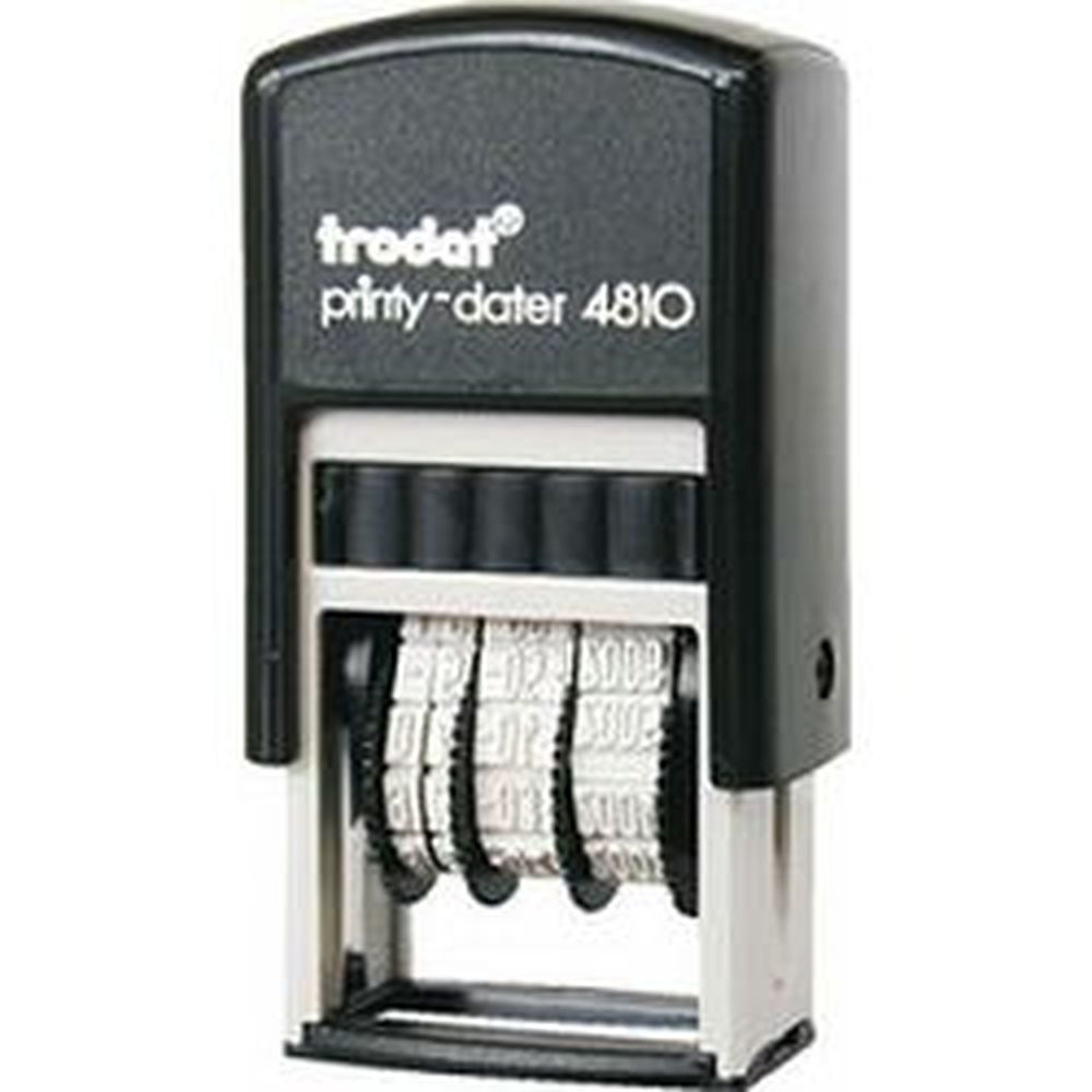 Štampiljka z napisom datuma Trodat. Ohišje štampiljke je izdelano iz 70% reciklirane plastike. Menjava blazinice s črnilom je hitra in enostavna.
