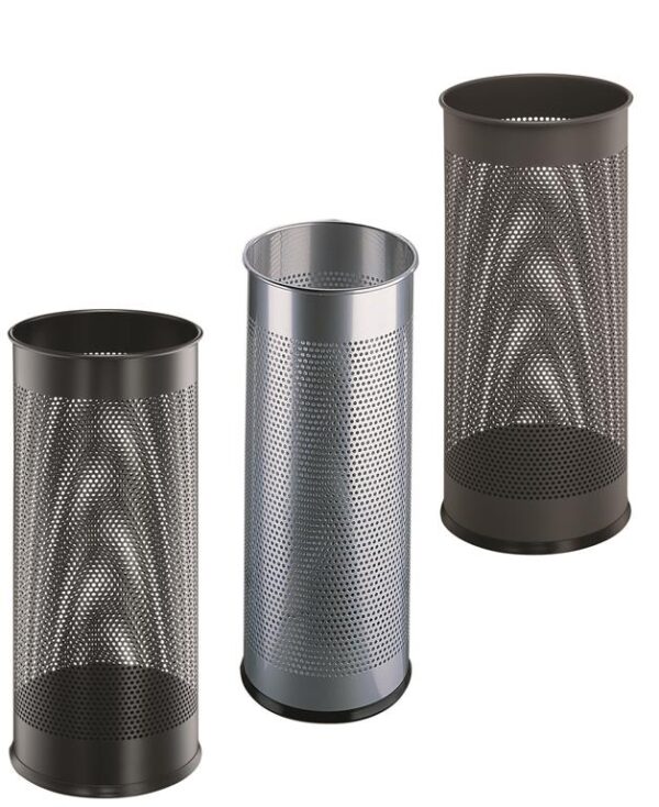 Kovinski koš za odlaganje dežnikov izdelan iz kvalitetnega jekla prevlečenega s poliester epoxy prevleko, ki ščiti pred praskami. Idealen je za uporabo pred vhodi v stavbe, doma, pisarni ali trgovini.