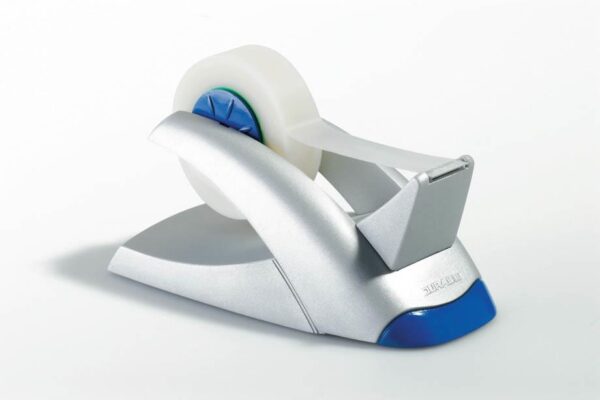Namizni odvijalec lepilnega traku širine, enostavna menjava traku, ostro rezilo. Na spodnji strani sta pritrjeni dve proti zdrsni blazinici. Priložen mat nevidni lepilni trak 19mmx33m.