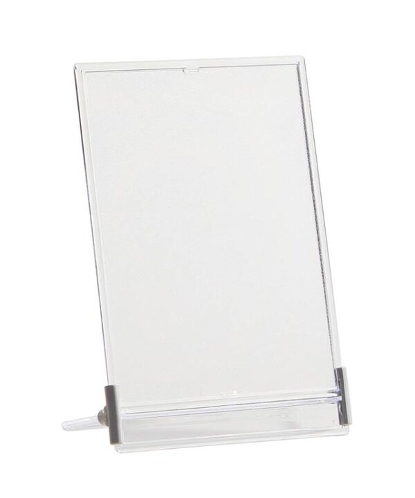 Namizno reklamno informacijsko stojalo za vlaganje posameznih listov. Izdelano je iz visoko prosojnega materiala. Idealno za vlaganje cenikov, jedilnih listov in drugih informacijskih obvestil.