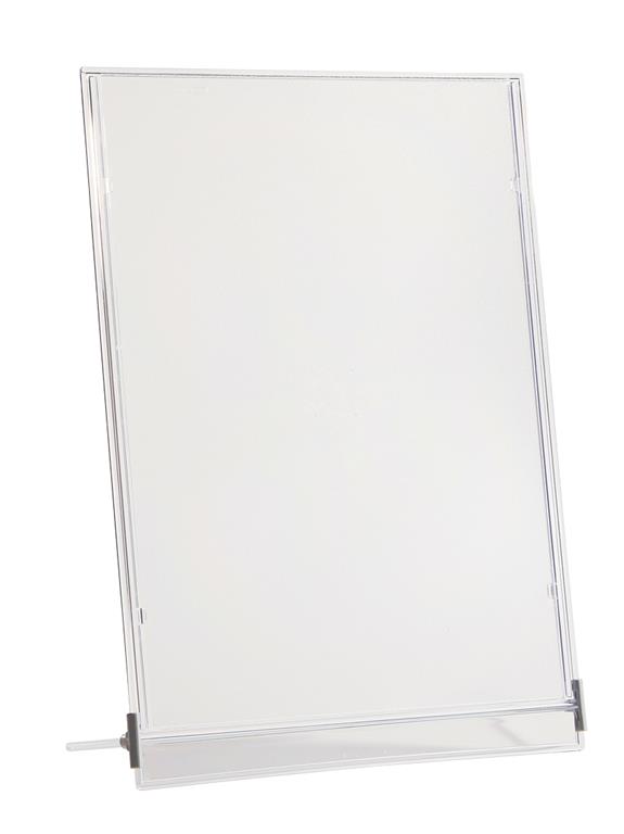 Namizno reklamno informacijsko stojalo za vlaganje posameznih listov. Izdelano je iz visoko prosojnega materiala. Idealno za vlaganje cenikov, jedilnih listov in drugih informacijskih obvestil.