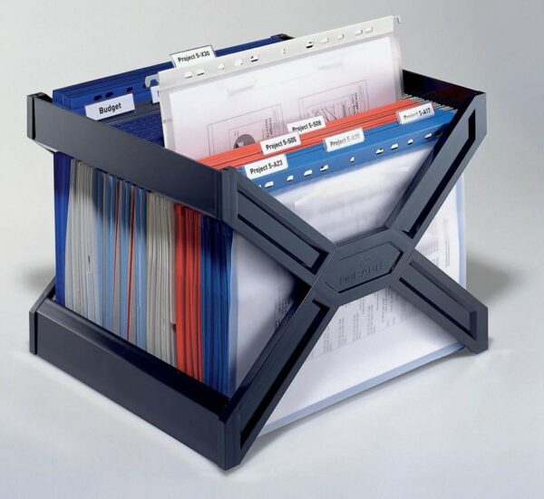 Stojalo za viseče mape je primerno za shranjevanje do 30 visečih map z jahači in je izdelano je iz stabilne lahke visokokavostne plastike. Stojalo je lahko in zložljivo, primerno za vstavljanje v predal. S pomočjo stojala si enostavno in pregledno organiziramo shranjevanje različnih dokumentov. V stojalu je priloženih 5 visečih map.