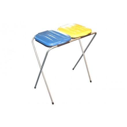 Stojalo za dve vreči, s plastičnim pokrovom, je primerno za ločeno zbiranje odpadkov. Konstrukcija stojala je iz pocinkanih cevi. Plastični pokrov in obroč za vrečo. Primerno za notranjost ali zunanjost.