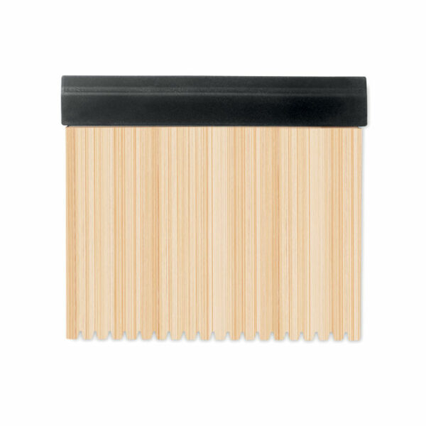 Strgalo za led iz bambusa z enim mehkim gumijastim nazobčanim robom in strgalom za strganje koščkov ledu z vetrobranskega stekla avtomobila, ne da bi pustilo praske.