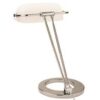 – »bančna« svetilka s kromiranim stojalom in belim mat steklenim svetilnim delom