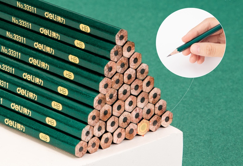 Grafitni svinčnik z radirko je namenjen umetnikom, amaterskim umetnikom, šolarjem, študentom in vsem, ki vedno potrebujejo grafitni svinčnik. Svinčnik je šest kotne oblike in ima odporno konico proti lomljenju. Lakirana površina je prijetna za držanje.