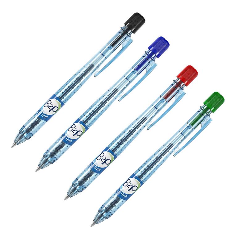B2P: Od plastenke do peresnika! Kemični svinčnik B2P ima plastično ohišje, reciklirano iz plastične steklenice. Priročno, zabavno in ekološko pero. Oblikovana kot steklenica za vodo, konico izdelano iz volfram karbida. Pero za ponovno polnjenje s črnilom, varnim za dokumente.